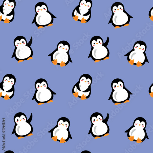 © Anastasiia, Fototapeta premium Winter pattern with cute penguins. Vector illustration. Background