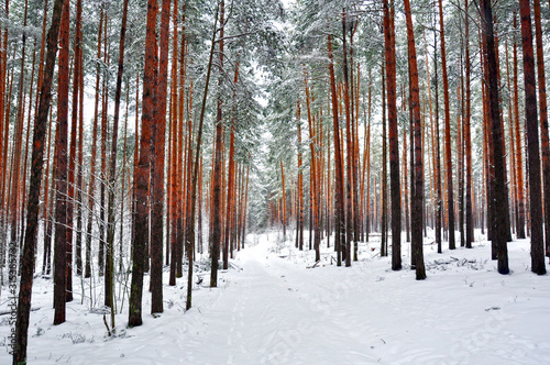 Naklejka premium winter pine forest in the snow