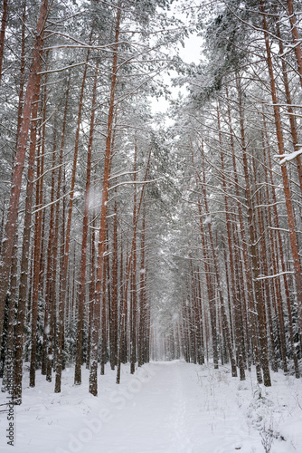 © Anna Boyarova, Fototapeta premium winter pine forest with snow