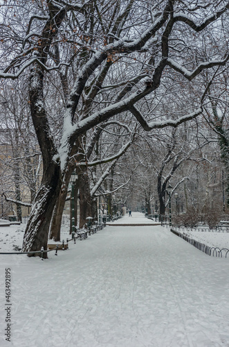 Naklejka premium Winter Planty park in the snow, Krakow, Poland