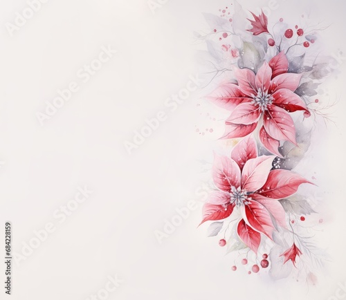 Fototapeta premium Winter poinsettia flower branches on white background, card, copy space