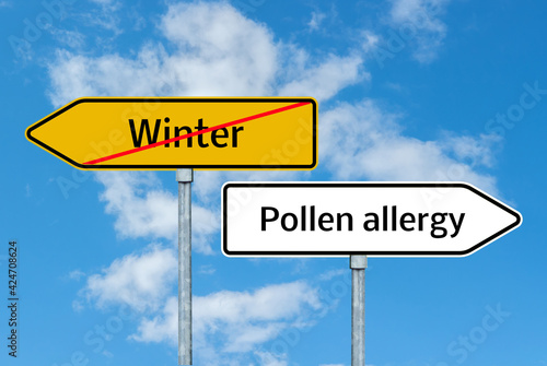 Fototapeta premium Winter / Pollen allergy Schild mit blauen Himmel