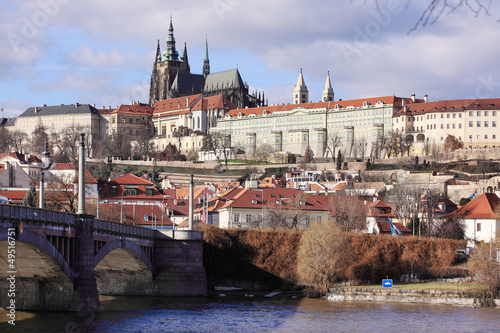 © Kajano, Fototapeta premium Winter Prague gothic Castle above River Vltava, Czech Republic