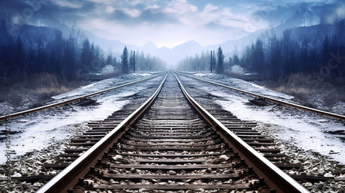 Fototapeta premium Winter Railway Journey Through Mountains