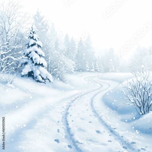 Naklejka premium Winter Road in a Snowy Forest Landscape