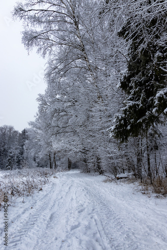 © Дмитрий Разнотовский, Fototapeta premium winter road in the forest