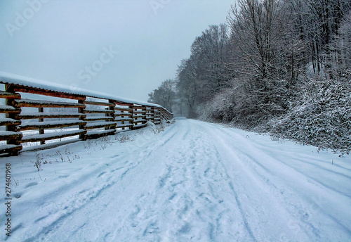 © Олександр Ісаєнко, Fototapeta premium Winter road Snowy country road stretching into the distance