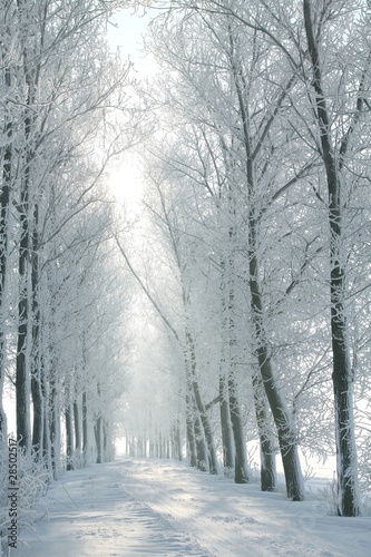 © Aniszewski, Fototapeta premium Winter rural road between the trees covered with frost