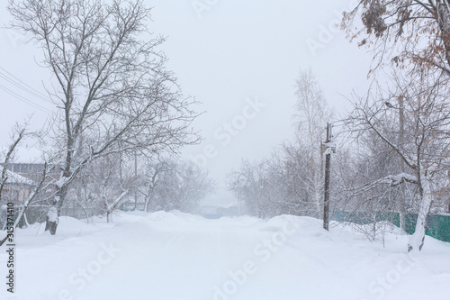 © Kate, Fototapeta premium Winter, rural streets are covered with snow. Snow blizzard