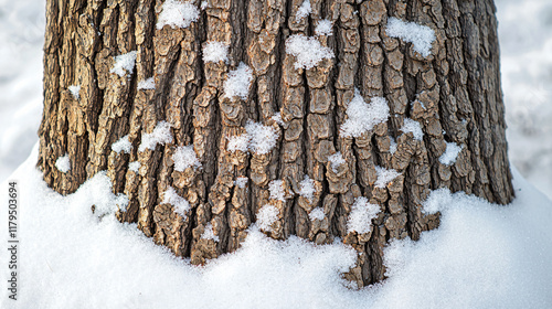 Obraz premium Winter's Embrace Snow-Covered Tree Trunk Texture