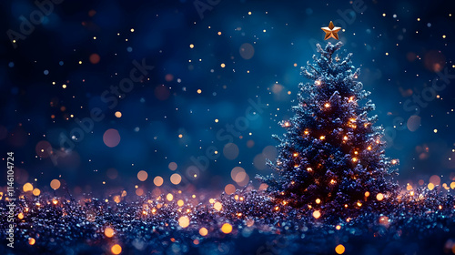 © Siasart, Naklejka premium Winter's Night: Sparkling Tree Lights Gleam Brightly