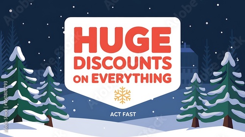 © lisa, Naklejka premium Winter Sale Announcement with Snow-Covered Trees and a Snowflake