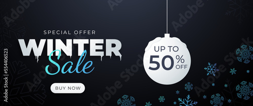 Naklejka premium Winter sale banner, up to 50% off, banners for online shopping. Banner for...