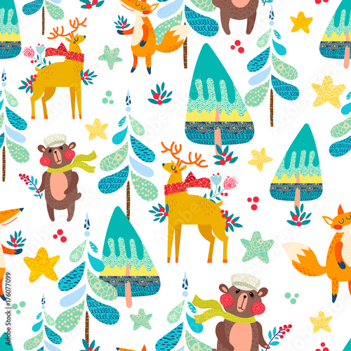 Obraz premium Winter seamless pattern with a Christmas forest.