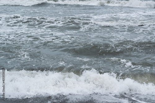 Fototapeta premium Winter seascape background, splashing water waves