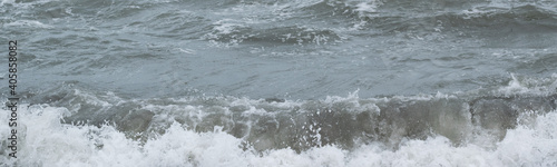 Fototapeta premium Winter seascape background, splashing water waves