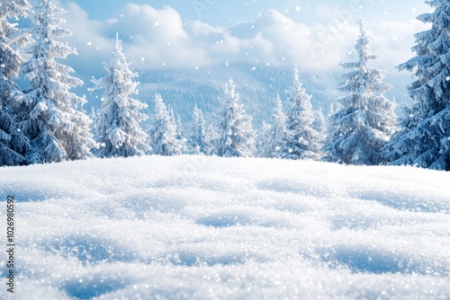 © dendyh7, Fototapeta premium Winter season background in white snow landscape