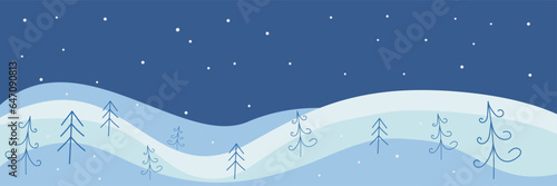 Fototapeta premium Winter season landscape with Christmas trees. Winter vector banner
