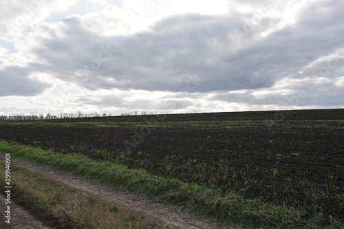 © Panas, Fototapeta premium winter shoots in autumn on black soil Ukraine