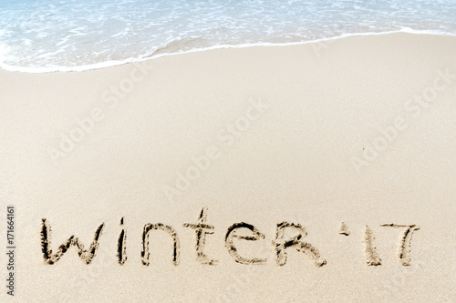 Fototapeta premium Winter 2017 sign sand near sea ocean tropic beach