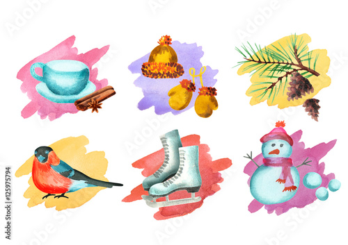 Naklejka premium Winter simbols set. Watercolor