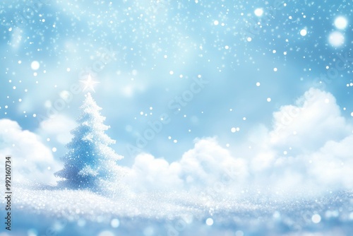 Naklejka premium winter, snow, Christmas, holiday, tree, blue, serene, peaceful, nature, background, festive, winter wonderland, bright, snowflakes, fresh