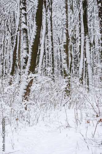 Fototapeta premium Winter snow covered trees background