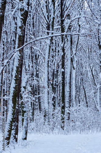 Fototapeta premium Winter snow covered trees background