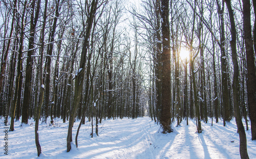 Fototapeta premium Winter snow covered trees background