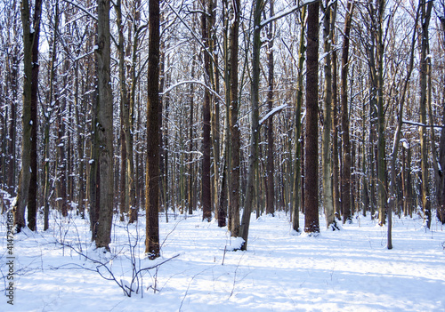 Fototapeta premium Winter snow covered trees background