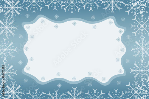 Fototapeta premium Winter snow frame. Christmas Snowflakes border. Snowy frame frozen background