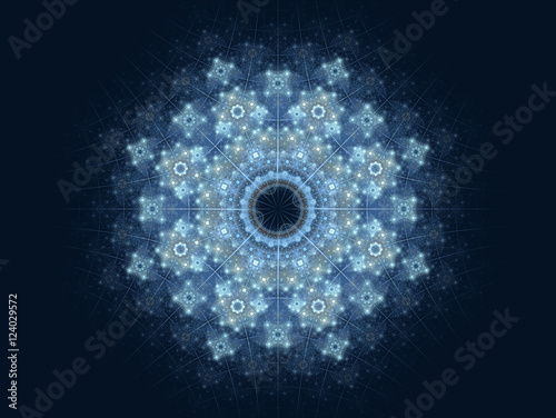 Obraz premium Winter, snow, frosty fractal pattern on a dark blue background