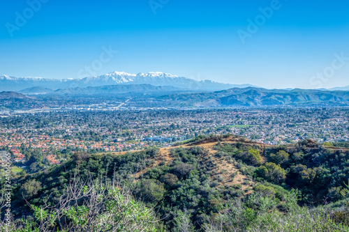 © Tim, Fototapeta premium Winter snow in the distance with forest and city