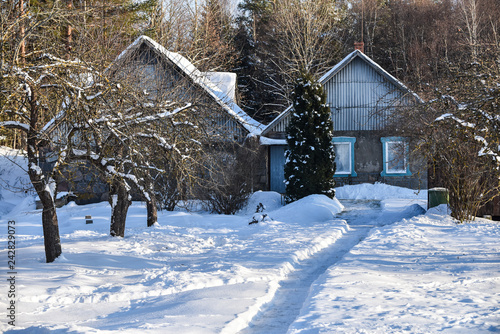 © Raimonds Kalva, Naklejka premium Winter snow landscapes in the village