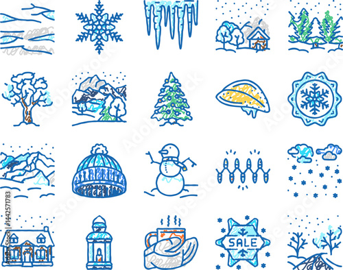 © vectorwin, Naklejka premium winter snow season nature icons hand drawn
