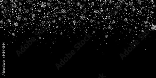 © Glitter_Klo, Obraz premium Winter snow snowflakes on black background. Vector