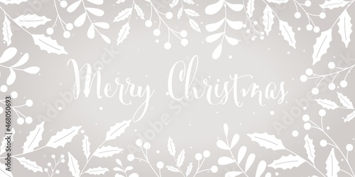 Fototapeta premium Winter snowflake greeting banner with gray background. Merry Christmas...