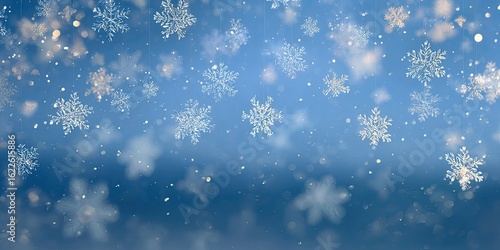 Fototapeta premium Winter snowflakes falling against a soft blue background