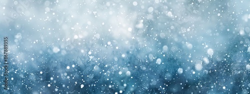 © Jafree, Fototapeta premium Winter snowflakes in a frosty blue atmosphere. Concept of snow, weather, cold season, holiday mood. Abstract soft winter background. Copy space. Banner