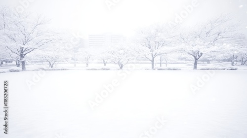 Obraz premium Winter Snowscape Serene Trees Under Falling Snow