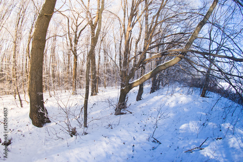 Fototapeta premium Winter snowy forest fisheye