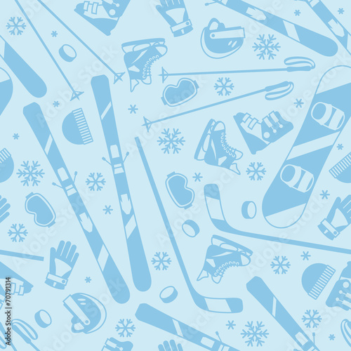 © incomible, Naklejka premium Winter sports seamless pattern with equipment flat icons.