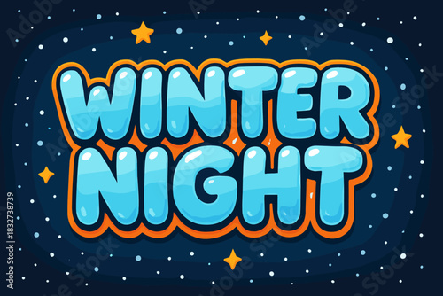 Fototapeta premium Winter Starry Night. Winter night sky with stars. playful cartoon bubble lettering, rounded icy shapes, thick