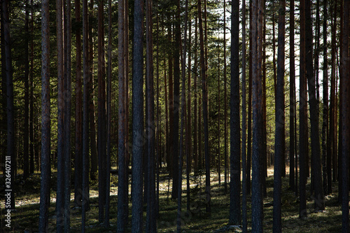 Obraz premium Winter sunny day in a pine forest, Russia.