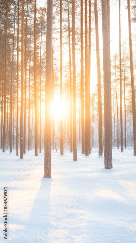 Obraz premium Winter Sunrise in Snowy Forest Minimalist Nature and Tranquility