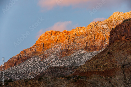 Fototapeta premium Winter sunrise in Zion National Park, United States of America