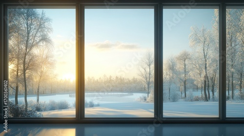 © billa stock, Fototapeta premium Winter sunrise through large windows