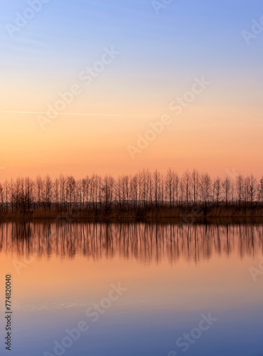 © rsooll, Fototapeta premium winter sunset on the lake after the ice melts