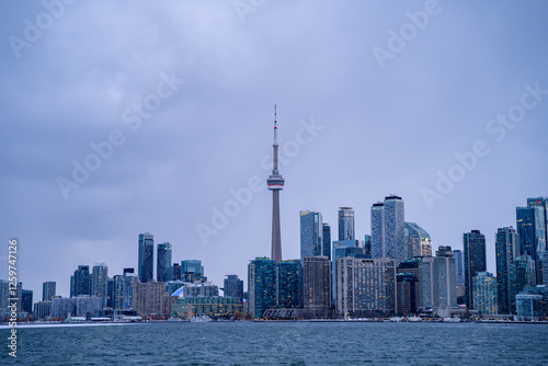 Fototapeta premium Winter sunset view of downtown Toronto from Lake Ontario.