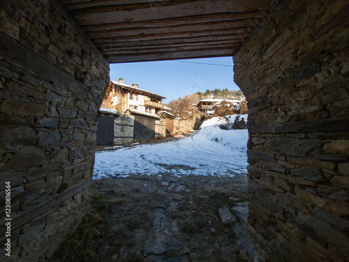 © Stoyan Haytov, Fototapeta premium Winter Sunset view of Village of Kovachevitsa, Bulgaria
